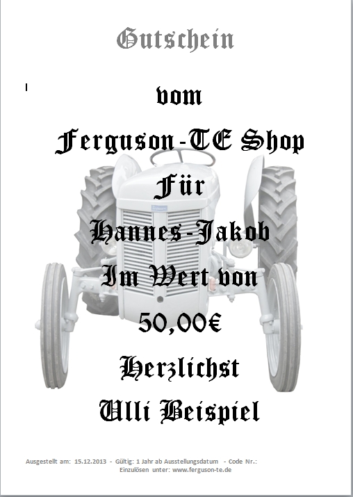 Machen Sie einem Fergie-Freund ein passendes Geschenk in Form eines Wertgutscheins.